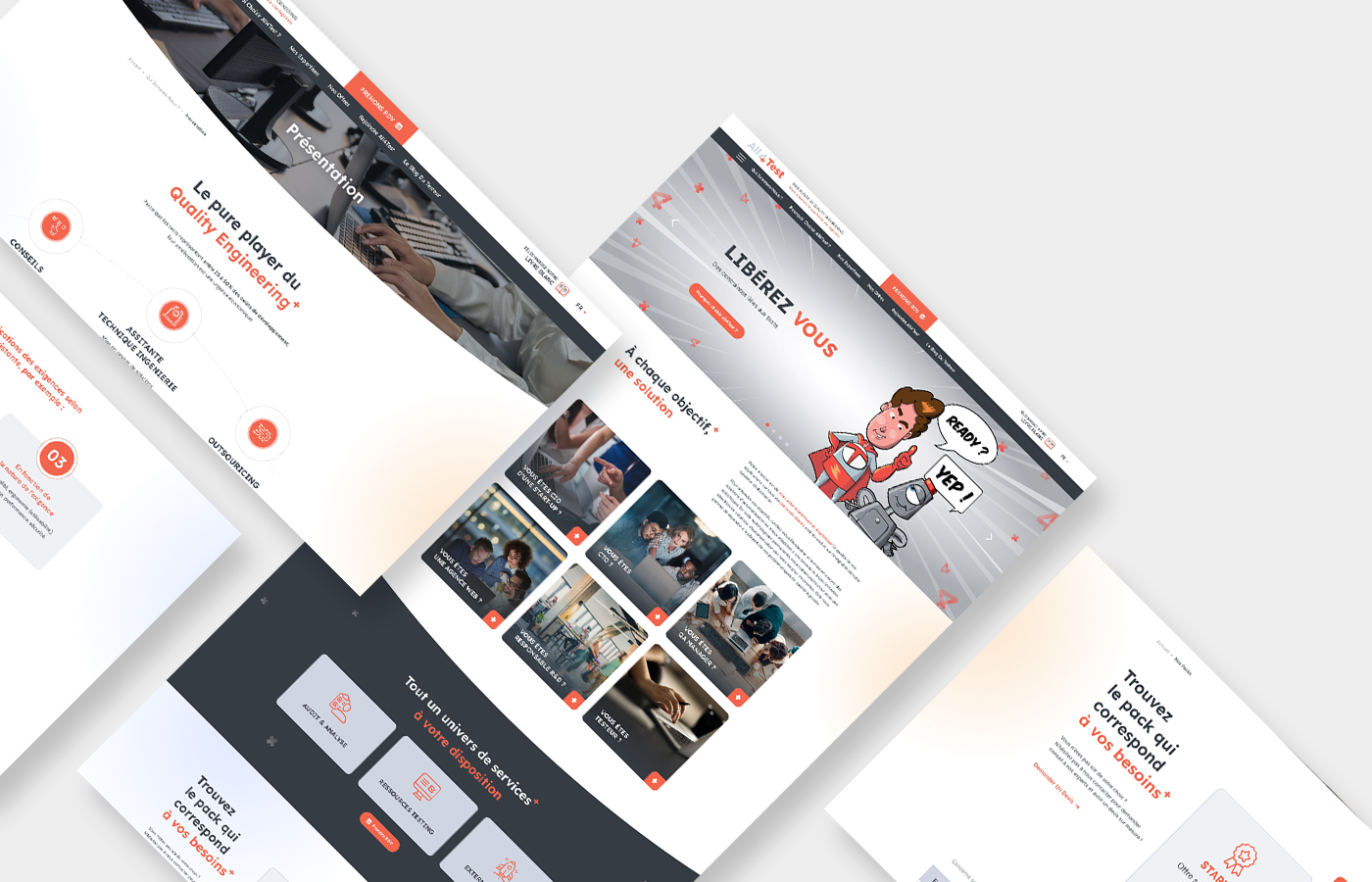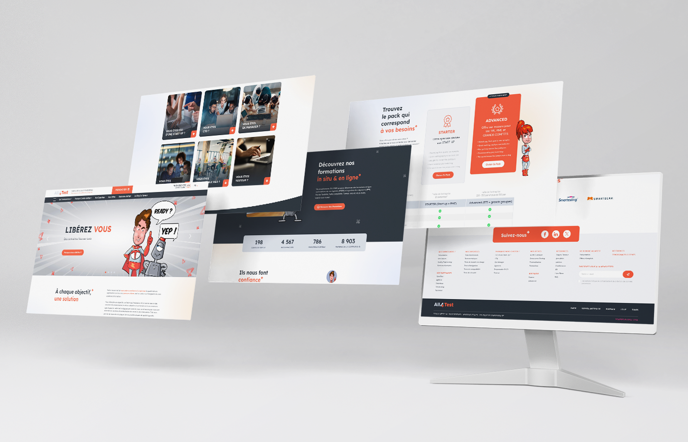 Après réflexion et concertation avec les équipes, nous avons également conservé et optimisé l’identité de marque d’All4Test, qui met en avant le super-héros Super T et le robot Oto, dégageant immédiatement un fort capital sympathie.