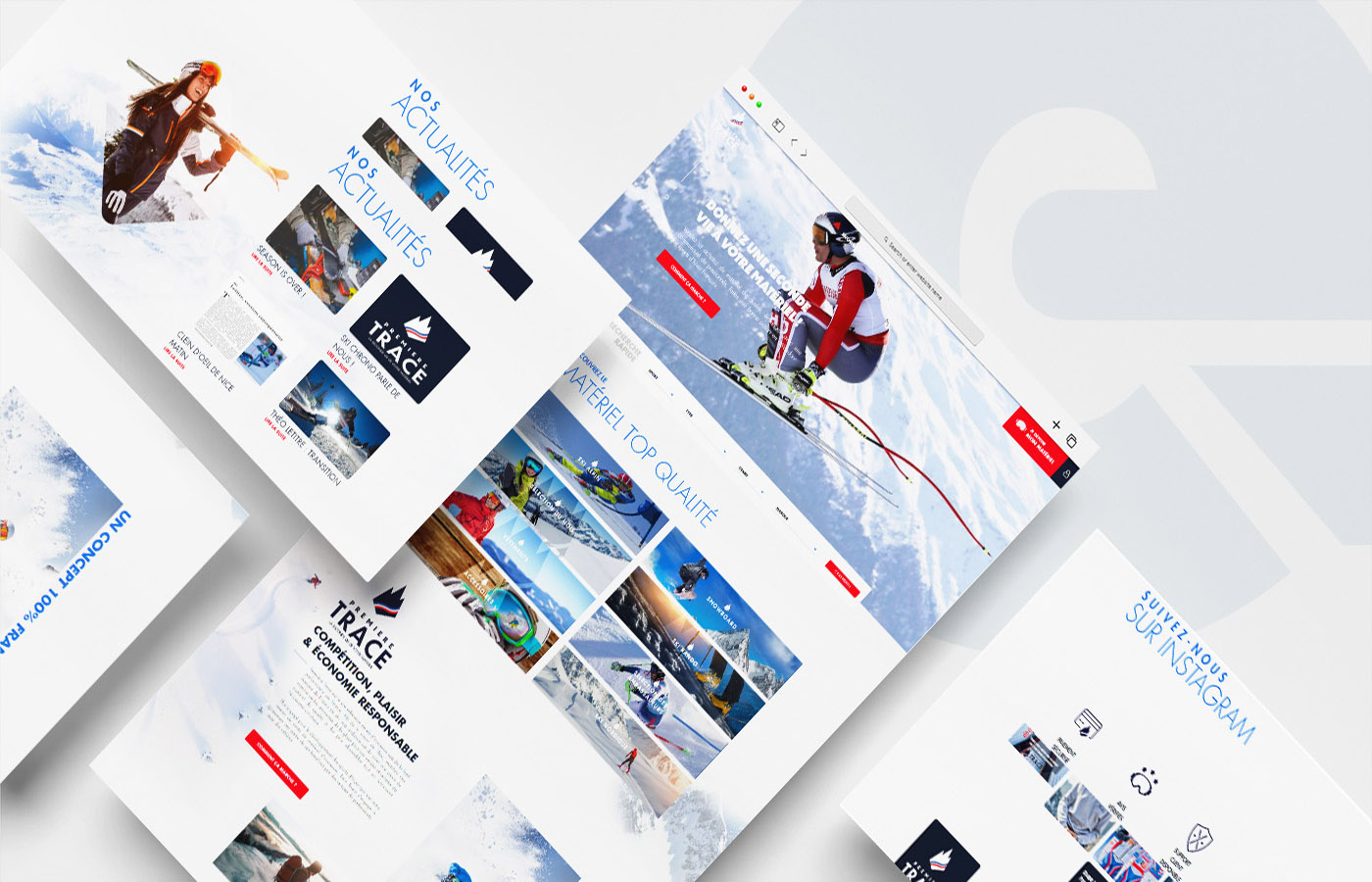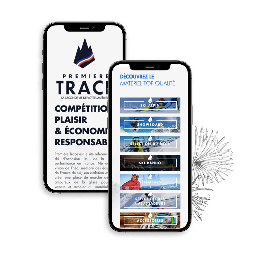 Nous avons redéfini dans un premier temps la proposition de valeurs du client et la promesse faîte aux clients utilisateurs. Devenir le premier site français de la communauté des inconditionnels des sports d’hiver, désireuse d’acheter, de vendre et de revendre du matériel et des équipements haut de gamme de seconde main à des prix abordables. Puis, nous avons travaillé un storytelling en phase avec les amoureux de la montagne qui nous a permis d’aboutir au nom du projet : « PREMIERE TRACE » comme la première trace laissée dans la poudreuse quand vous êtes le premier à passer sur la piste. Les amateurs comprendront …
